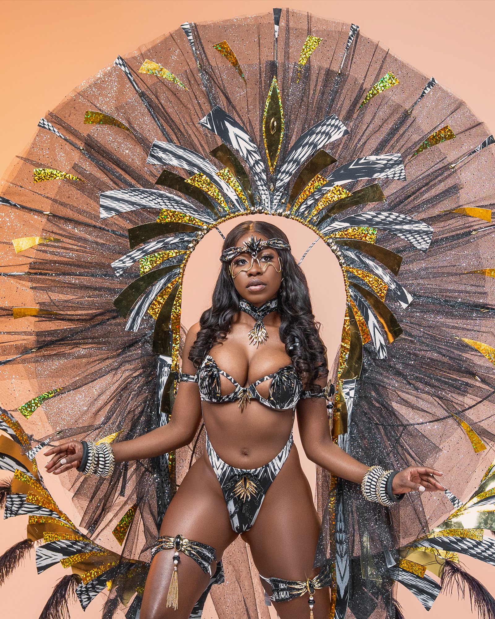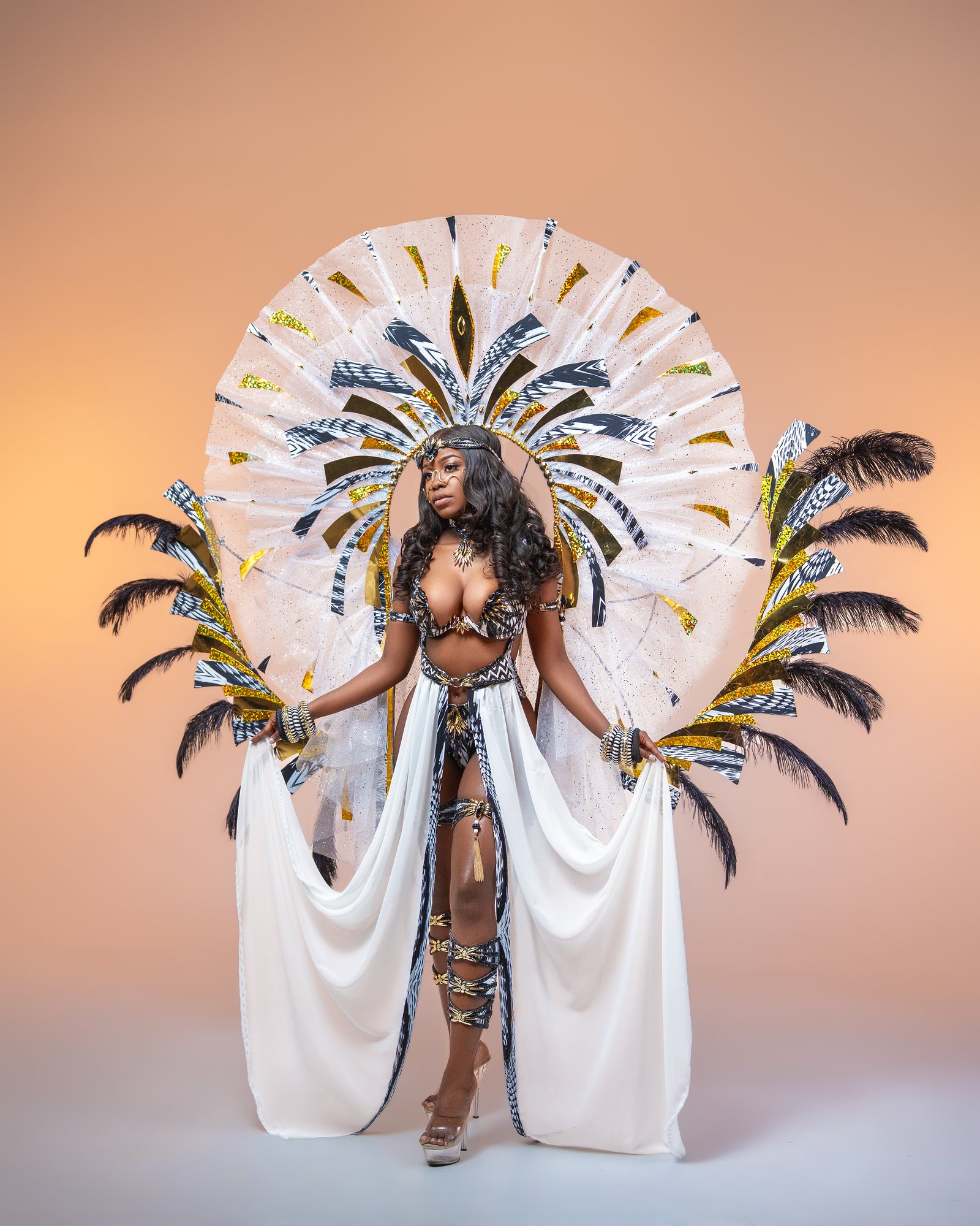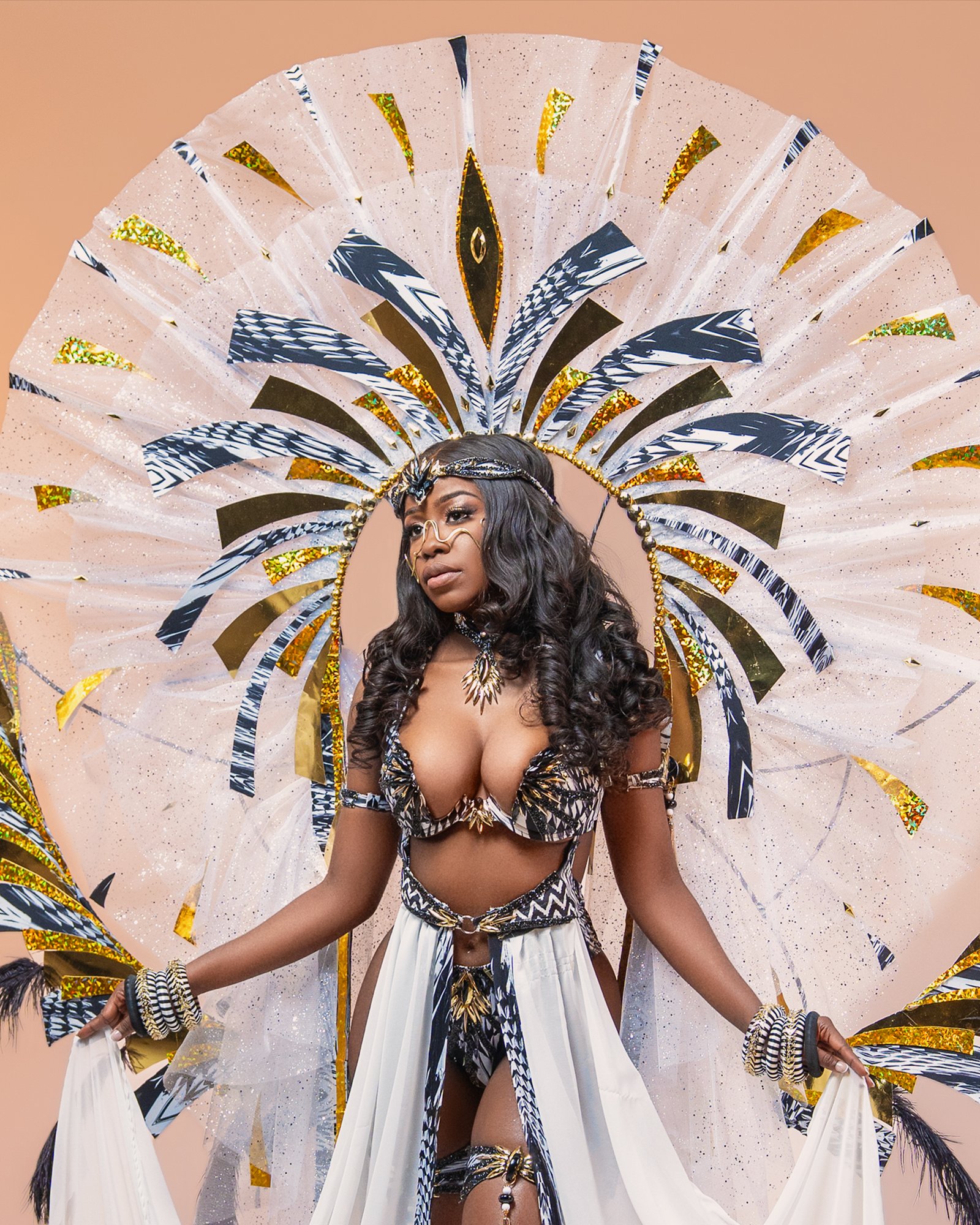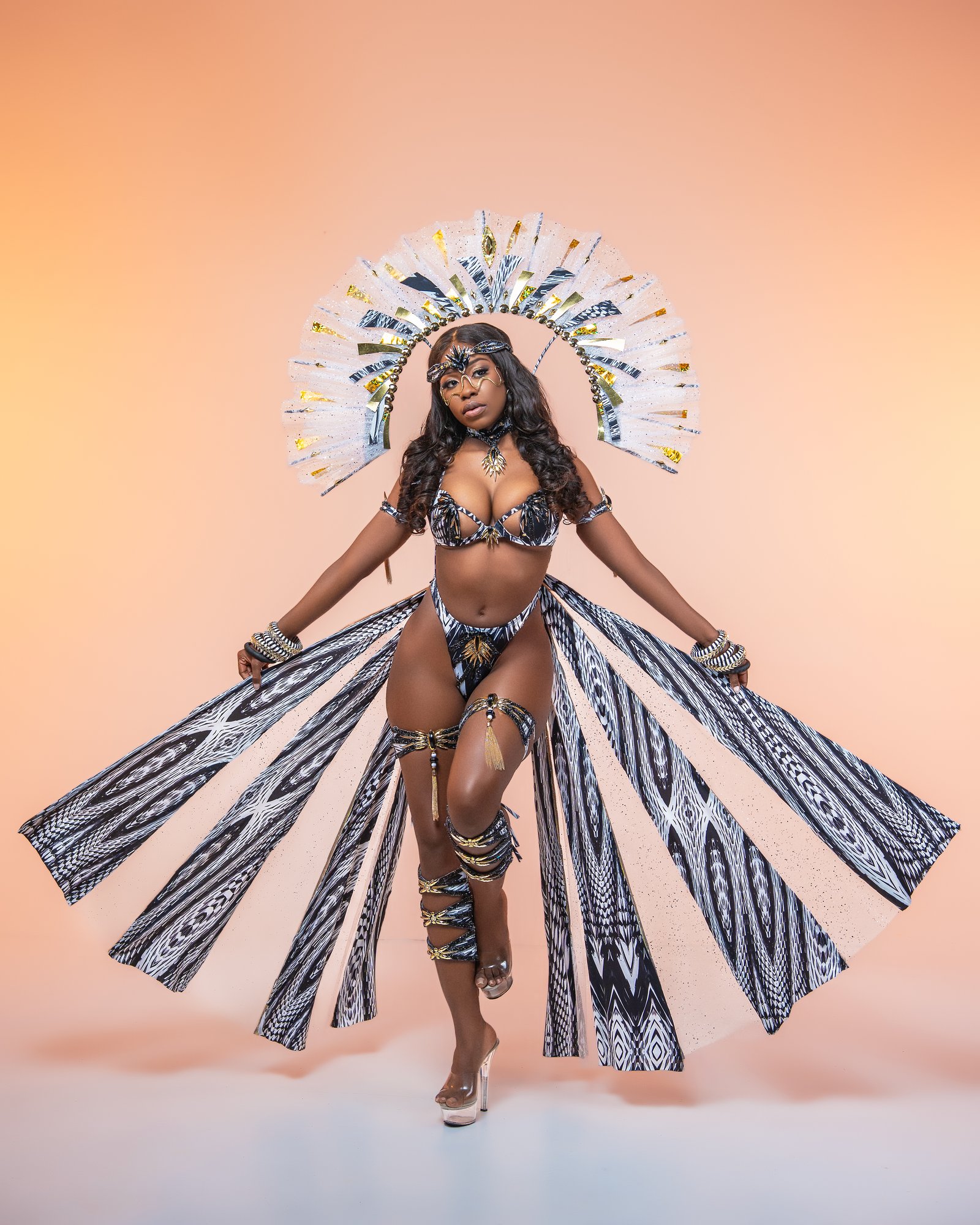 Presented in Mirage’s 1994 production Ebony & Ivory, this section was designed by renowned Trinidadian designer Wayne Berkeley. The concept explored striking black-and-white designs, using a single accent color to create bold contrast and visual impact.