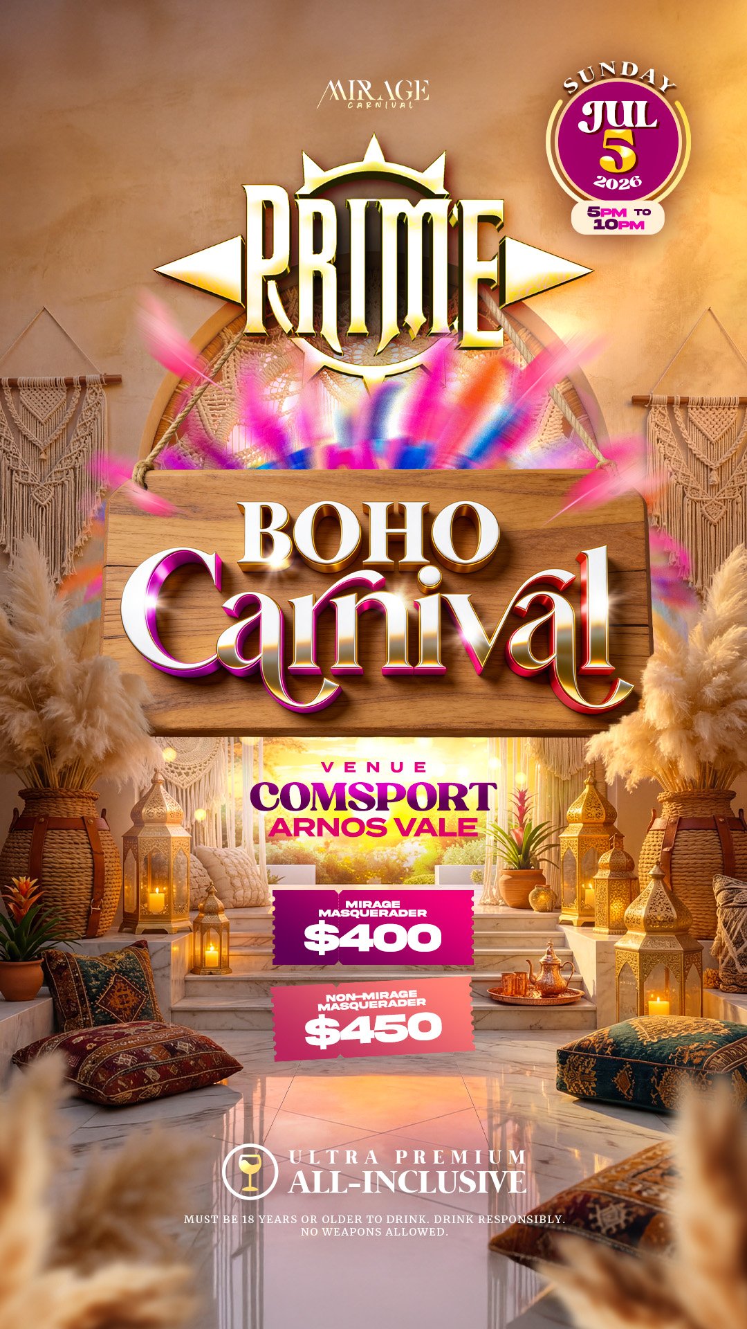 I authorize Mirage Productions to charge my credit card account for PRIME - Boho Carnival Tickets in the amount below.