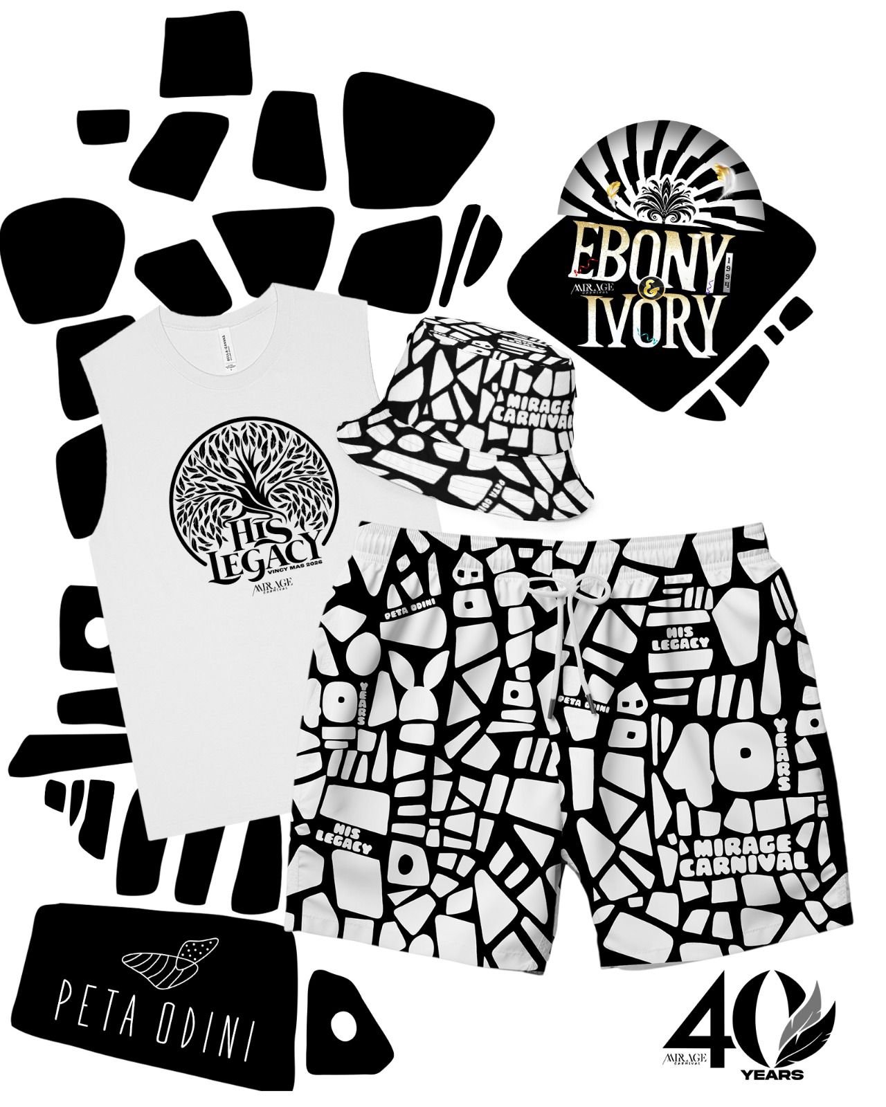 Comes with Shorts, Bucket Hat & Muscle T-Shirt.